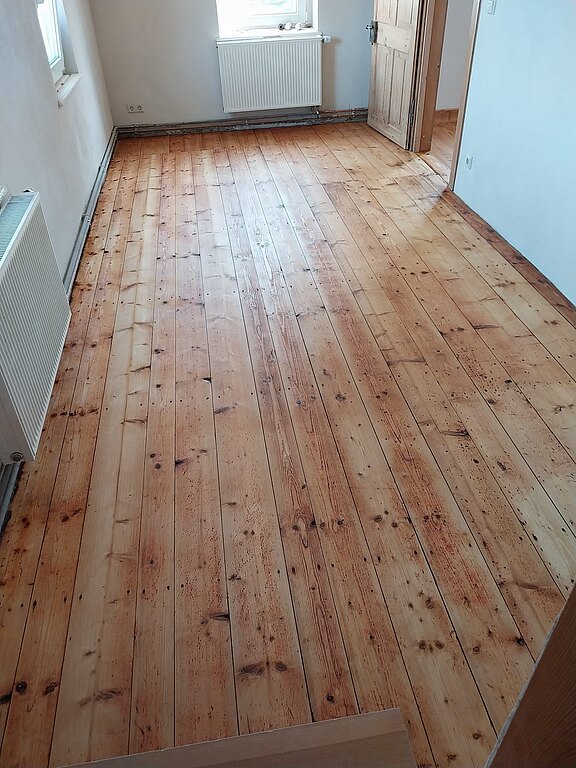 Das Herstellen einer feinen Oberfläche, mit natürlichen Ölen (und Wachsen) endbehandelt und sogar die passenden Sockelleisten aus Vollholz vollenden bestes Wohngefühl.